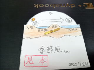 | 14 | 夏と冬の季節風 番号順に紙を折っていくと日本に吹いてくる風が どんな影響を与えるかがわかります。 |
